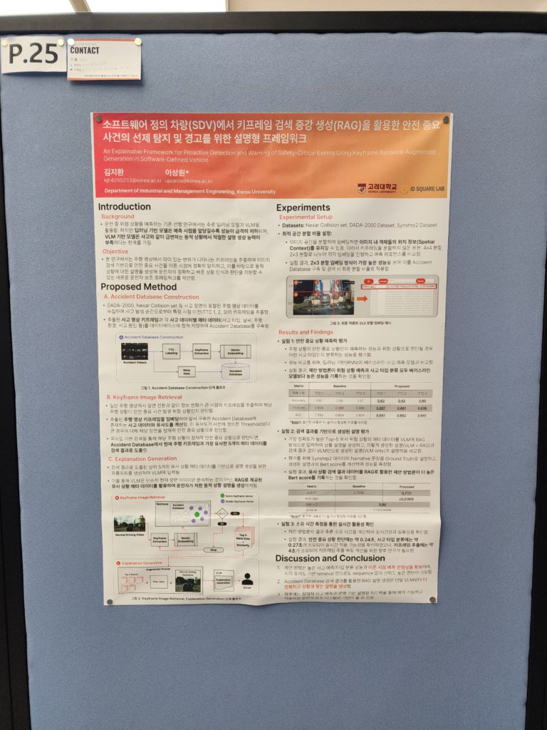 κΉμ§ν μμ¬κ³Όμ μ ‘μννΈμ¨μ΄ μ μ μ°¨λ (SDV)μμ ν€νλ μ κ²μ μ¦κ° μμ± (RAG)μ νμ©ν μμ μ€μμ¬κ±΄μ μ μ νμ§ λ° κ²½κ³ λ₯Ό μν μ€λͺ ν νλ μμν¬’ ν¬μ€ν° λ°νκ° μΈκΈ°μμ μμ¬νμμ΅λλ€. μΆνλ립λλ€!